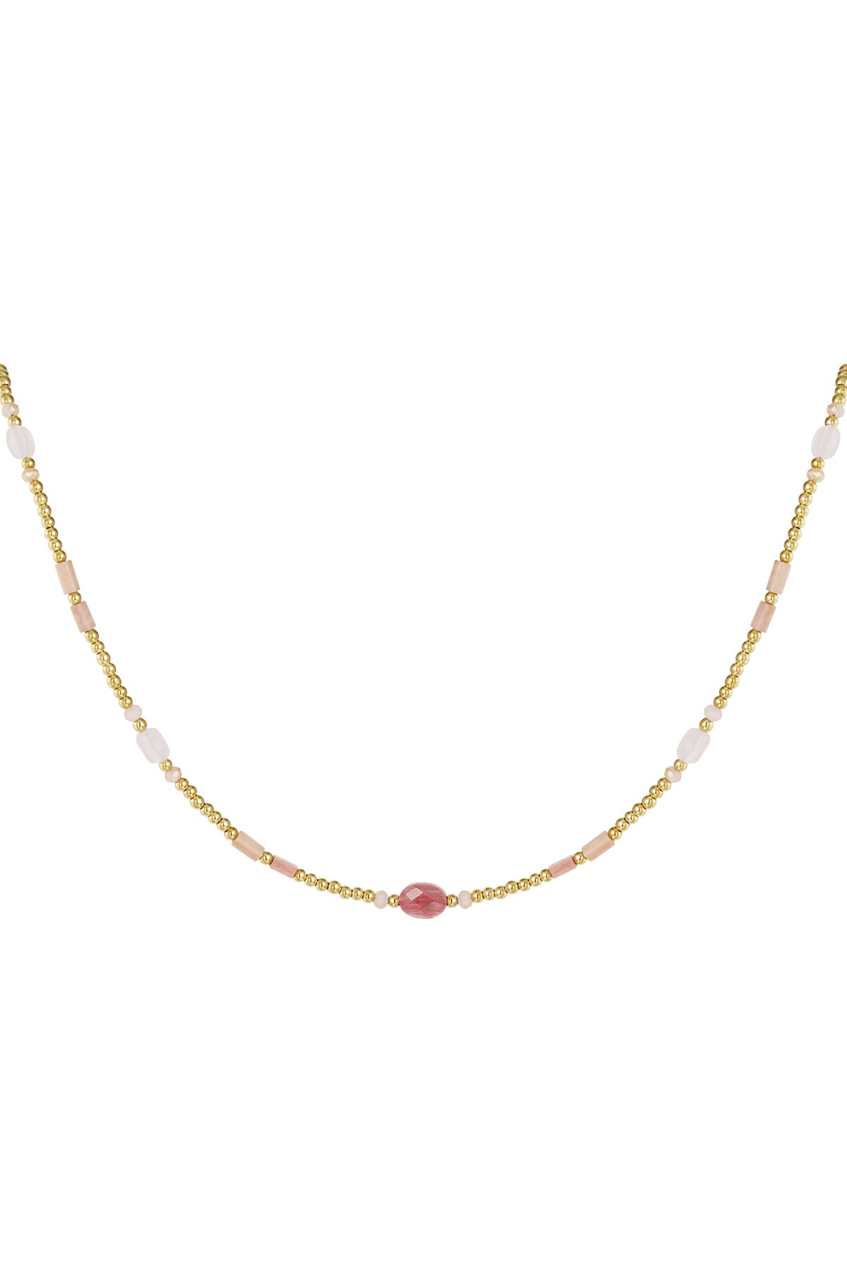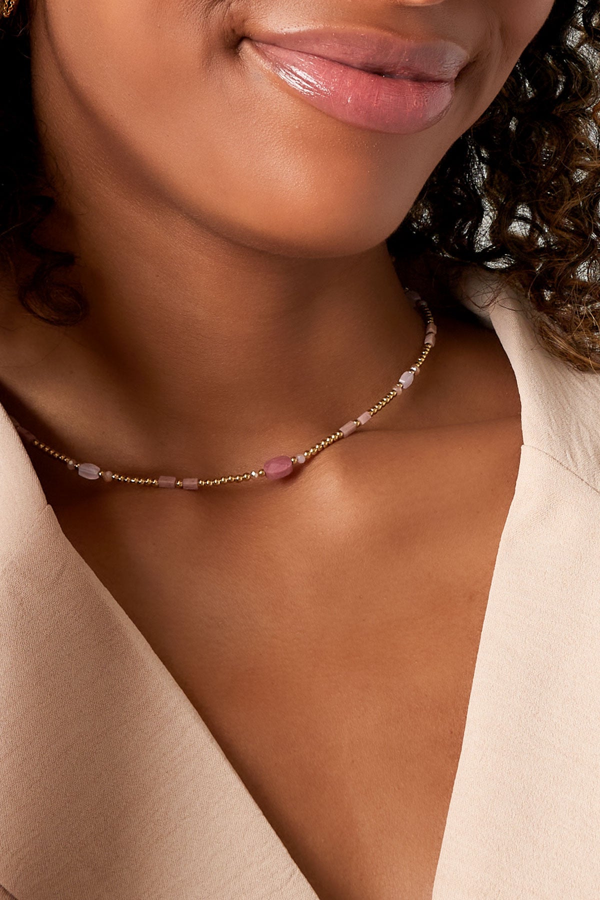 This gorgeous pink and gold beaded necklace is made of stainless steel, hematite, glass beads, Opal and aventurine stones.